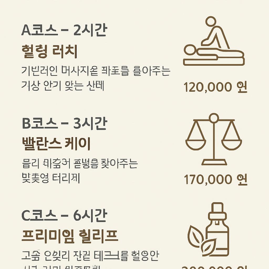 👉 코스별 맞춤 서비스를 통해 고객의 컨디션과 목적에 따라 최적의 만족을 제공합니다.